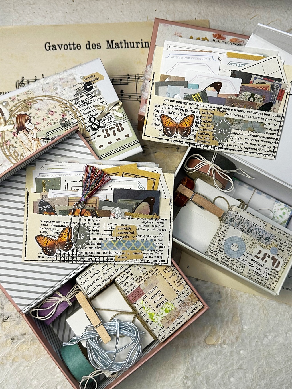 Caixas de papel, decoradas com uma colagem personalizada minha ♥️