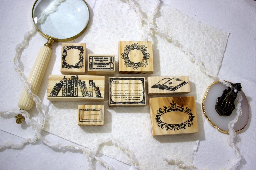 Todos os carimbos foram colocados na madeira por mim, ou seja, eles eram carimbos de silicone, mas para vender, achei legal colocar na madeira.