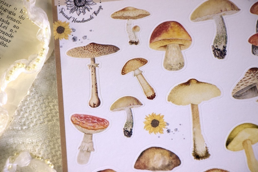 Uma cartela de adesivos LINDA da coleção da loja, com cogumelos!