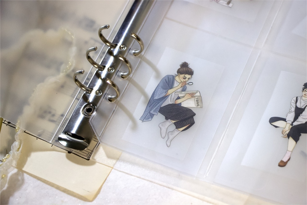Essa divisória possui 4 bolsos de tamanhos iguais, perfeitos para organizar seus adesivos, menininhas, loops de pet tape e muito mais!